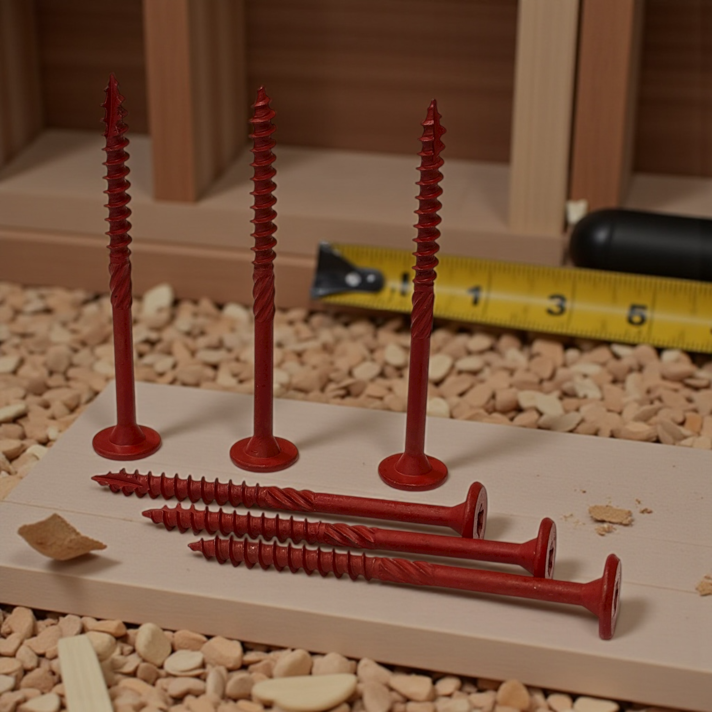 Конструкционные саморезы FlatLock Red 85мм предназначены для надежного скручивания стоек из строганной доски толщиной 45 мм в каркасном домостроении.